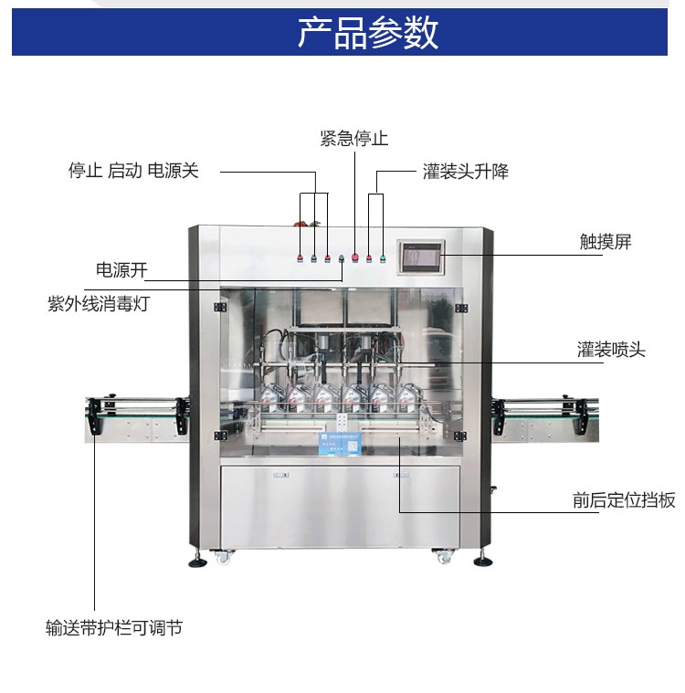 該六頭柱塞式全自動(dòng)潤滑油灌裝機(jī)特的灌裝頭設(shè)計(jì)及真空回吸系統(tǒng),確保灌裝過程無殘油滴漏,快慢雙速灌裝,灌裝速度可調(diào),杜絕溢瓶現(xiàn)象。該機(jī)采用動(dòng)力灌裝,無需配裝高位罐,簡化了安裝工序,提高了灌裝效率。履帶式壓蓋機(jī),穩(wěn)定無噪音,無空壓現(xiàn)象。觸摸屏界面友好,操作簡捷,SIEMENS PLC控制系統(tǒng),運(yùn)算速度快,性能穩(wěn)定,品質(zhì)卓越。電、氣件均采用精品元件,確保整機(jī)運(yùn)作穩(wěn)定。