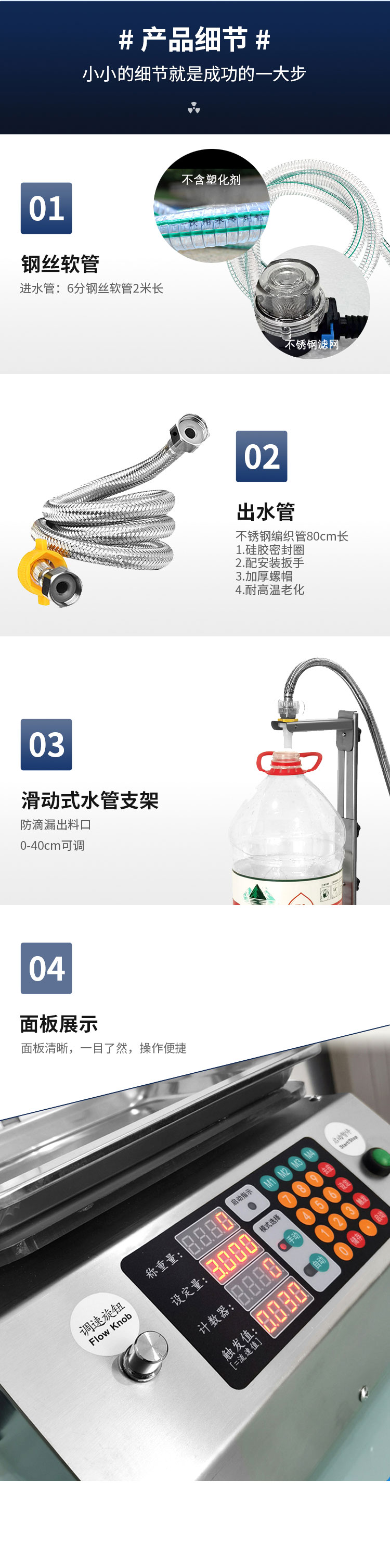 稱重式液體灌裝機適用于30g-15kg內(nèi)的各種常見液體灌裝。采用精度高,反應(yīng)靈敏的電子秤作為計量標(biāo)準(zhǔn)。其性能可以超越所有時間定量的方式。
