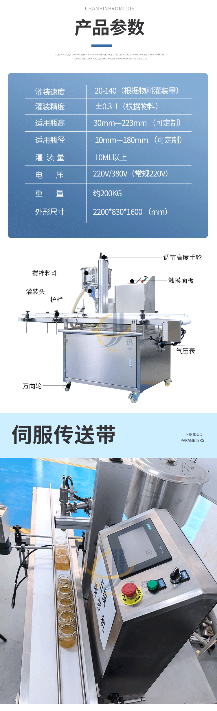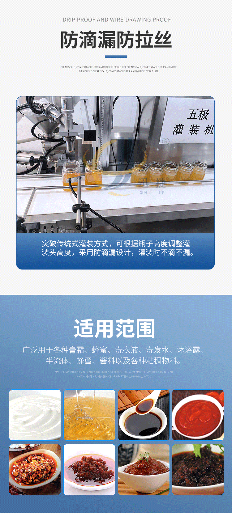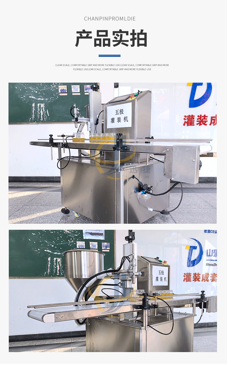 五極灌裝機:極快-單頭2200瓶/時 極簡-操作簡單 極廣-啥啥都能灌 極穩(wěn)-24小時不停機 極準-200g誤差小于1g。