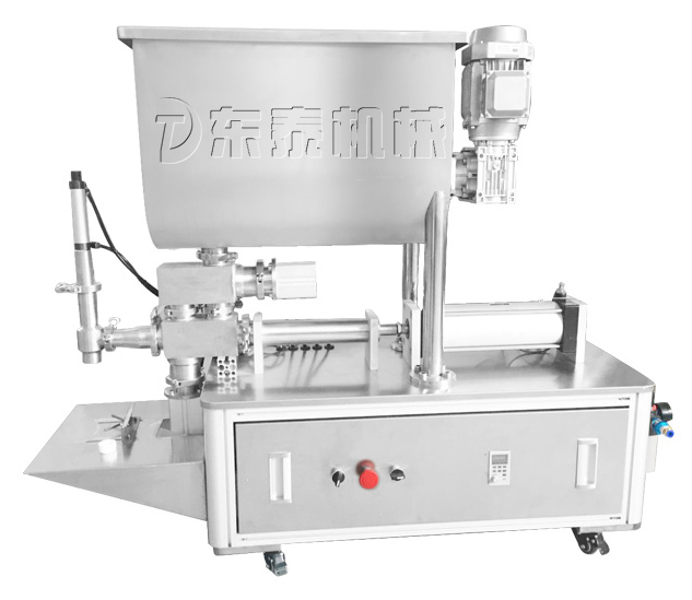 DTG-500-DV型半自動辣椒醬灌裝機結(jié)構(gòu)合理、機型小巧、性能可靠、定量準確、操作方便,動力部分采用氣動結(jié)構(gòu),均采用國內(nèi)知名氣動元件。物料接觸部分均采用304不銹鋼材料制成,符合GMP認證的要求。采用加大攪拌料斗,料斗容積可達120L,立的全鋁外殼銅芯攪拌電機,變頻調(diào)速,可適應于各種醬料的灌裝。可根據(jù)用戶需要在機型范圍內(nèi)任意調(diào)節(jié)灌裝量及灌裝速度,灌裝精度高。灌裝悶頭采用防滴漏裝置。